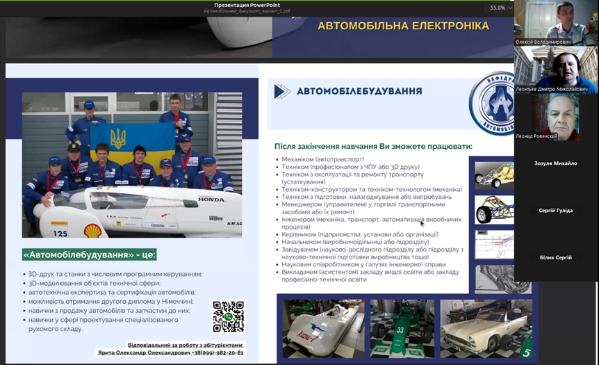 З вітальним словом до студентів і викладачів звернувся декан Автомобільного факультету Харківського автомобільно-дорожнього університету Леонтьев Дмитро Миколайович.  Дмитро Миколайович познайомив студентів з історією та сьогоденням університету, зі спеціальностями факультету, його особливостями, надав усю необхідну інформацію про умови вступу до університету, подальше працевлаштування. Студенти задавали питання та отримували на них відповіді. Розповідь супроводжувалась змістовною презентацією.