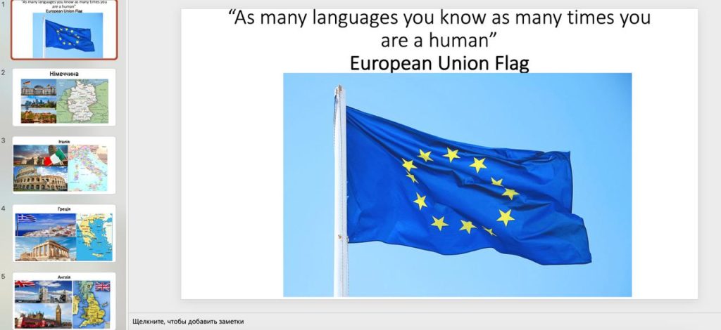 У рамках тижня філологічних дисциплін викладач іноземної мови Аліна Анатоліївна Малярова провела низку цікавих та пізнавальних заходів, серед яких — інтелектуальна вікторина “As many languages you know as many times you are a human” та інтерактивне заняття-гру “Getting to know the different cultures and traditions of the world”.