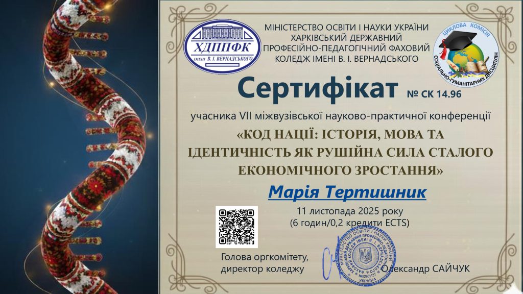 Після завершення конференції всі учасники — викладачі та студенти, чиї тези були опубліковані у електронному збірнику, — отримали іменні сертифікати. Це є офіційним визнанням їхніх старань, високої професійної мотивації та інтелектуального внеску. Щиро дякуємо вам за активну позицію та бажаємо нових наукових відкриттів і професійних досягнень!